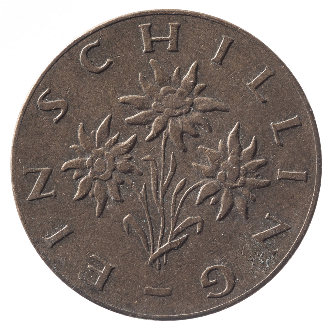 U sredini veliki broj 1, a ispod njega tekst SCHILLING i godina kovanja.