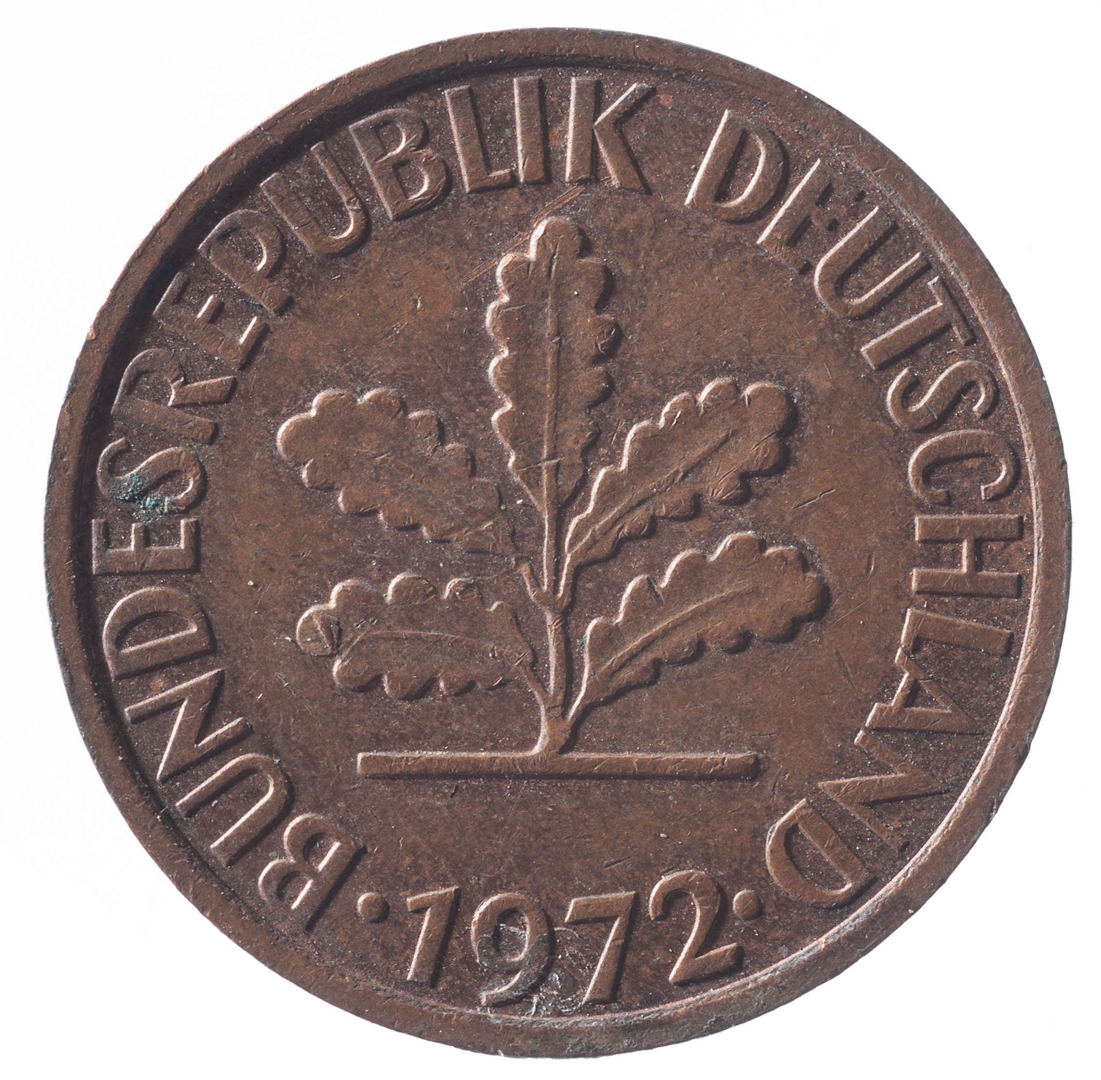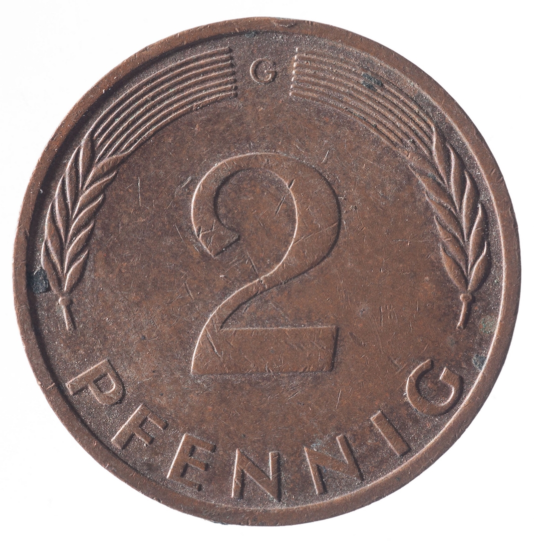 Avers: U sredini mladica hrasta s pet listova u vodoravnoj liniji. Uz rub ispisan tekst BUNDESREPUBLIK DEUTSCHLAND i godina 1972. Revers: U sredini broj 2. Na vrhu slovo G (oznaka kovnice), a uz donji rub riječ PFENNIG.