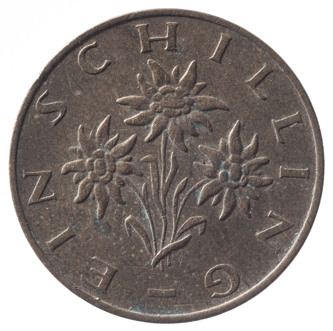 U sredini veliki broj 1, a ispod njega tekst SCHILLING i godina kovanja.