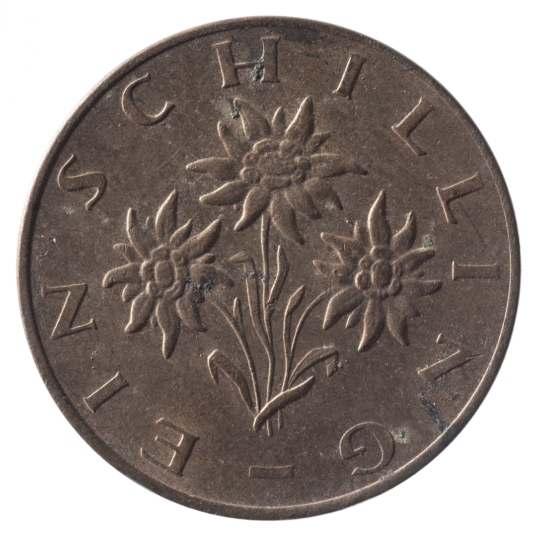 U sredini veliki broj 1, a ispod njega tekst SCHILLING i godina kovanja.