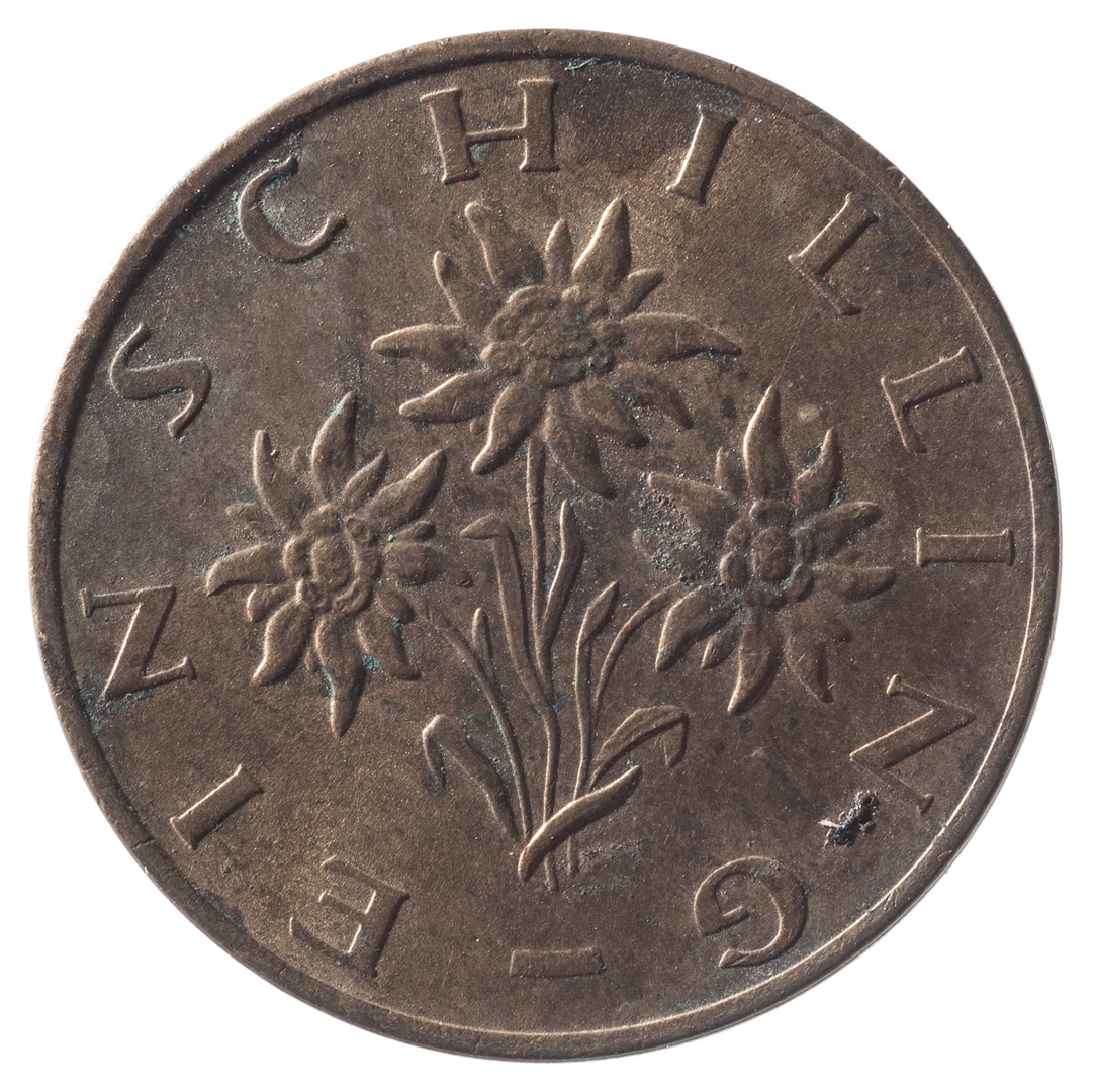 U sredini veliki broj 1, a ispod njega tekst SCHILLING i godina kovanja.