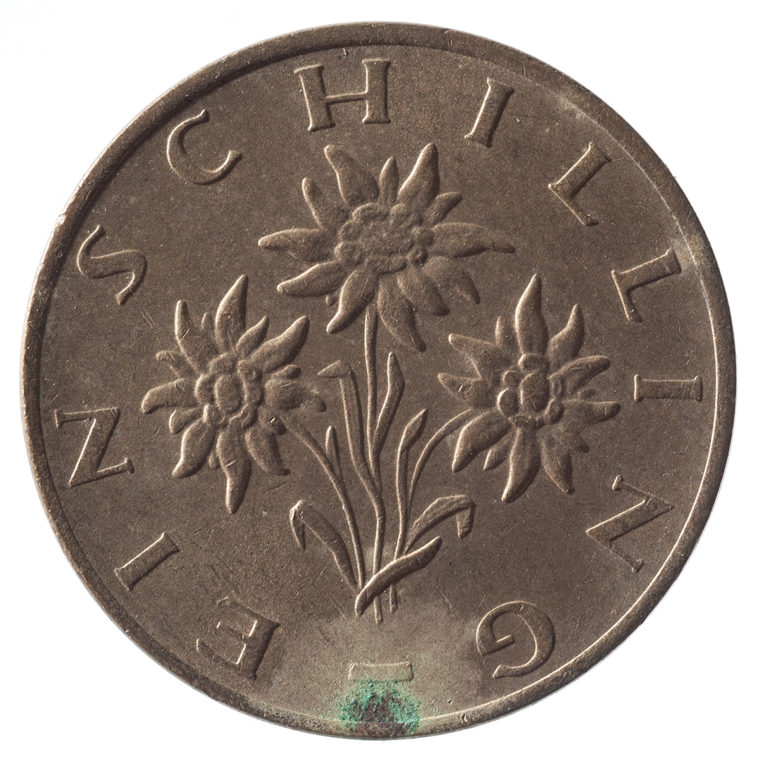 U sredini veliki broj 1, a ispod njega tekst SCHILLING i godina kovanja.