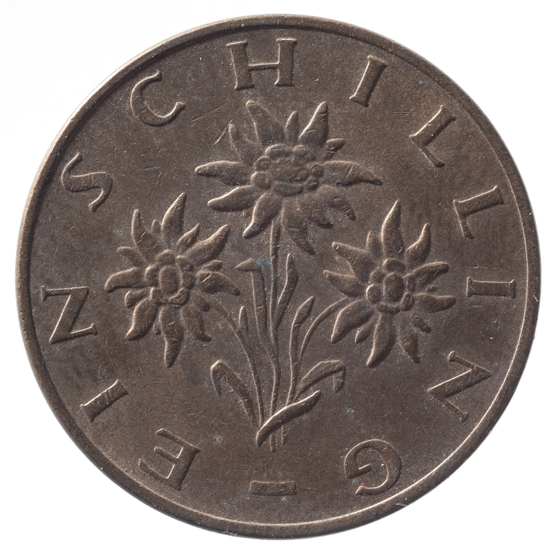 U sredini veliki broj 1, a ispod njega tekst SCHILLING i godina kovanja.