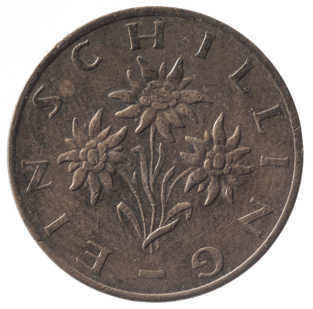U sredini veliki broj 1, a ispod njega tekst SCHILLING i godina kovanja.