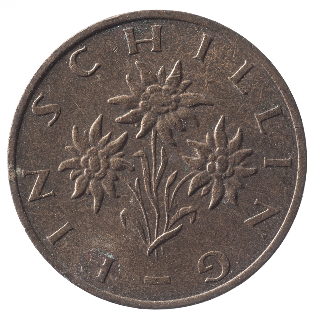 U sredini veliki broj 1, a ispod njega tekst SCHILLING i godina kovanja.