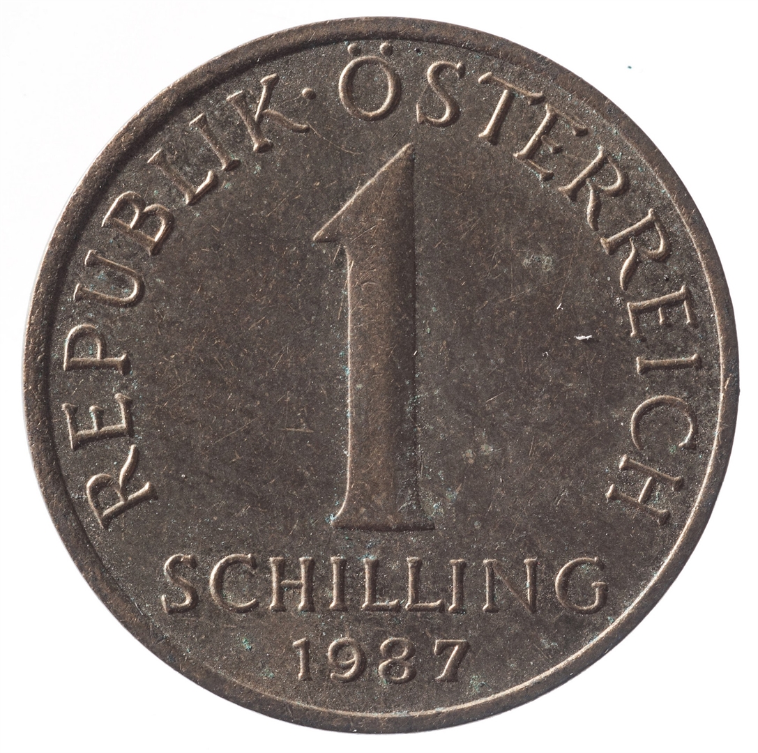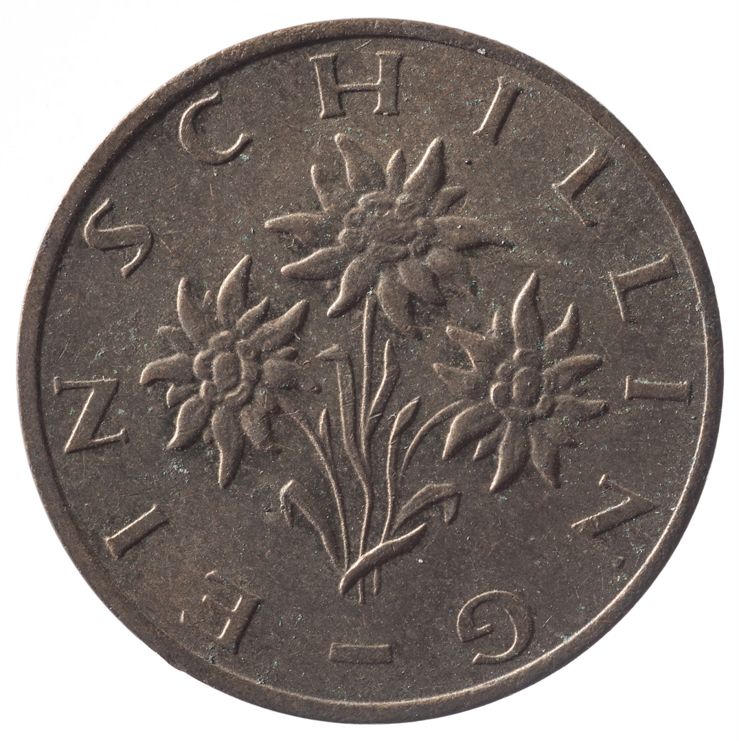 U sredini veliki broj 1, a ispod njega tekst SCHILLING i godina kovanja.