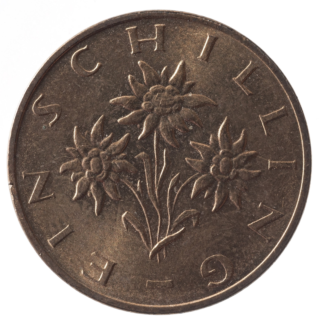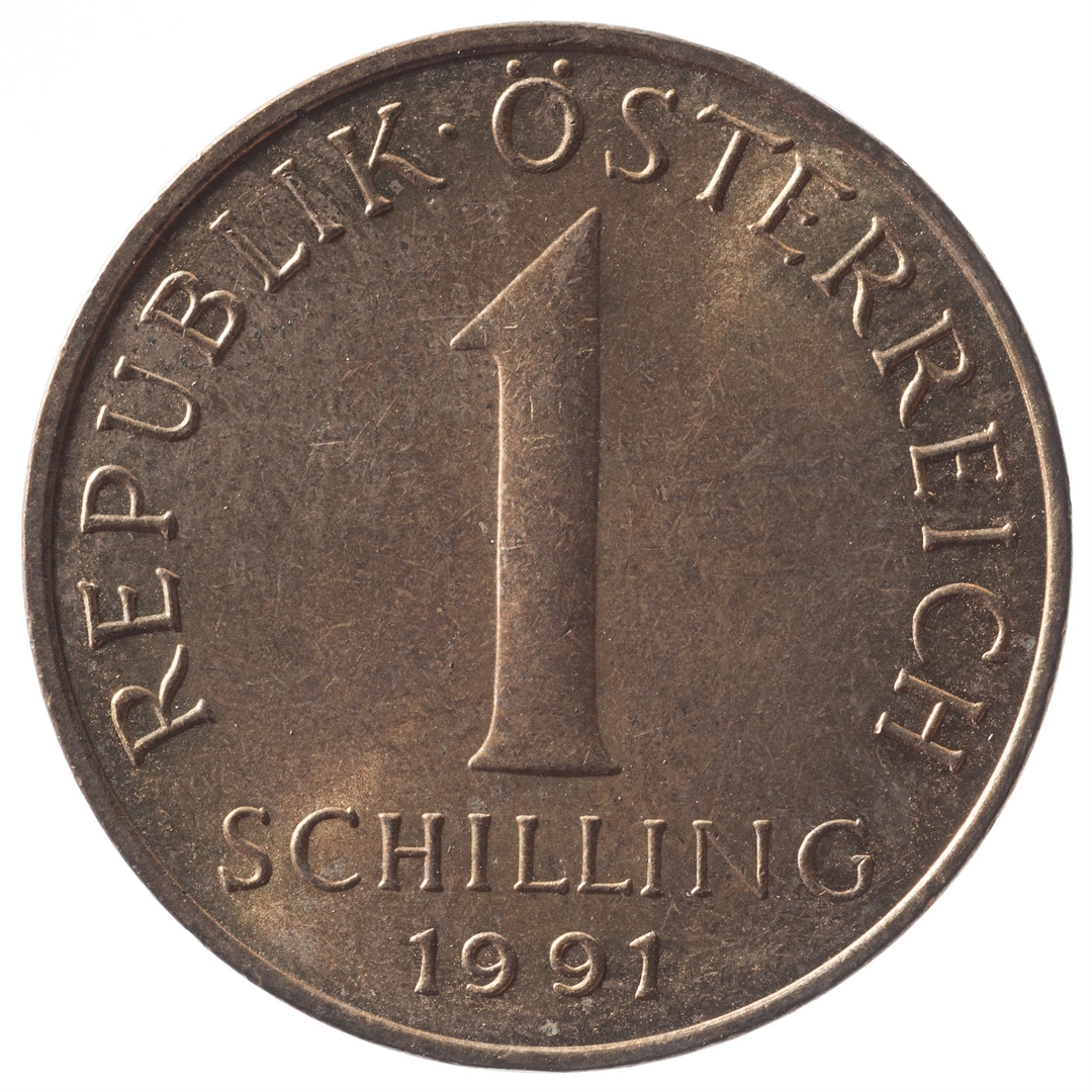 U sredini veliki broj 1, a ispod njega tekst SCHILLING i godina kovanja.