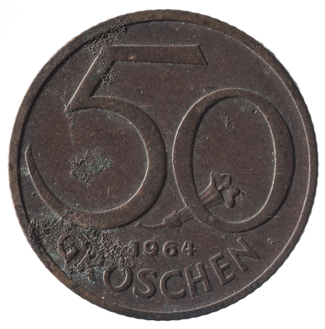 Avers: U sredini državni grb. Kružno uz rub tekst REPUBLIK ''O''STERREICH. Revers: Veliki broj 50 u čijem se dnu nalazi cvijet. Ispod godina kovanja (1964) i tekst GROSCHEN.