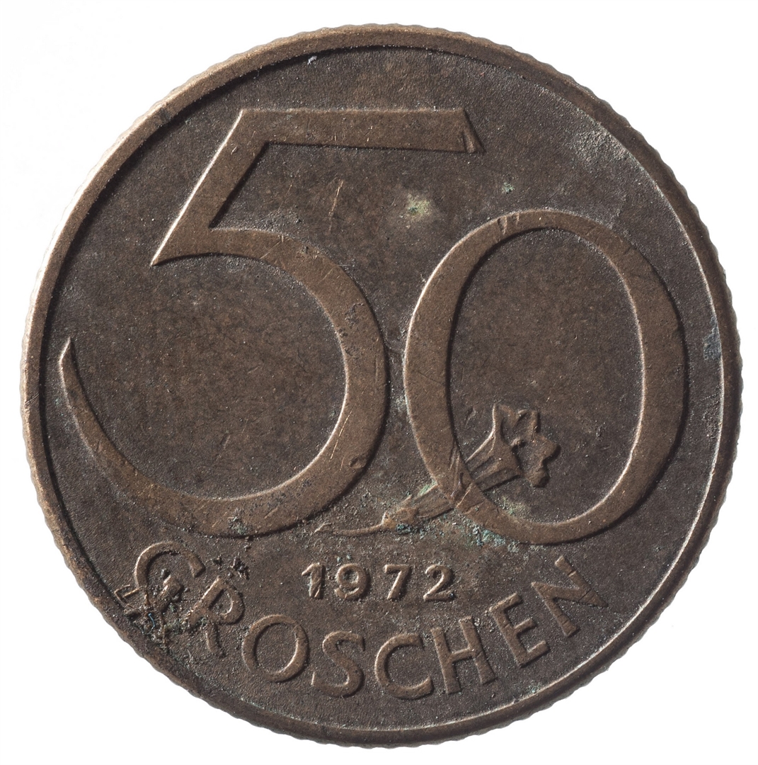 Avers: U sredini državni grb. Kružno uz rub tekst REPUBLIK ''O''STERREICH. Revers: Veliki broj 50 u čijem se dnu nalazi cvijet. Ispod godina kovanja (1972) i tekst GROSCHEN.