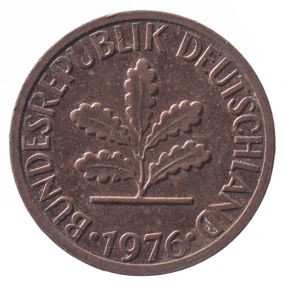 U sredini mladica hrasta s pet listova u vodoravnoj liniji. Uz rub ispisan tekst BUNDESREPUBLIK DEUTSCHLAND i godina 1976.
