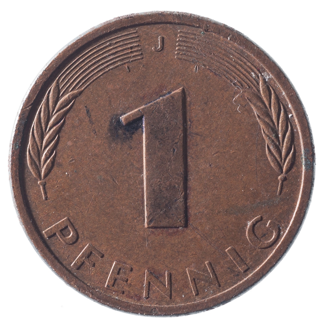 Avers: U sredini mladica hrasta s pet listova u vodoravnoj liniji. Uz rub ispisan tekst BUNDESREPUBLIK DEUTSCHLAND i godina 1979. Revers: U sredini broj 1. Na vrhu slovo J (oznaka kovnice), a uz donji rub riječ PFENNIG.