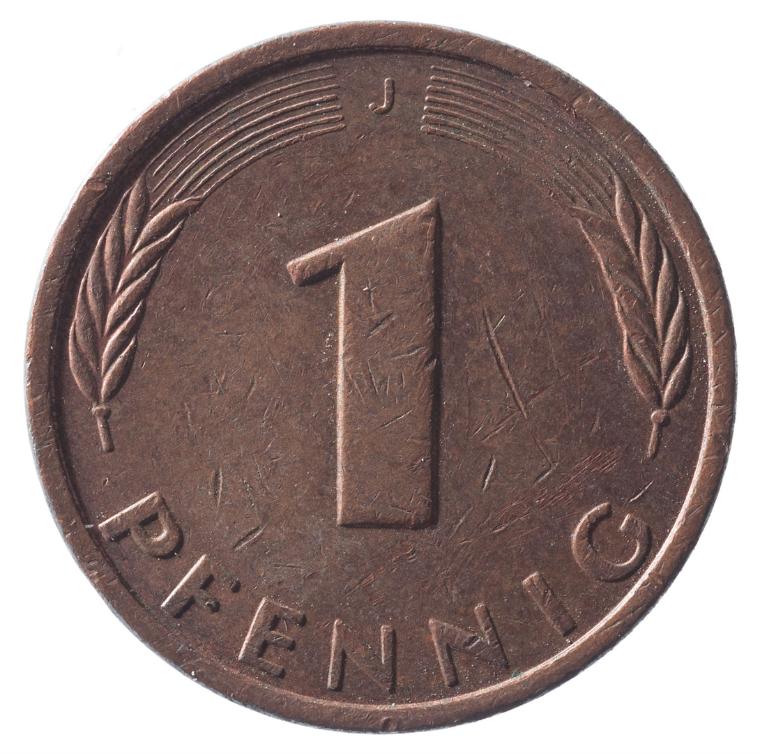 Avers: U sredini mladica hrasta s pet listova u vodoravnoj liniji. Uz rub ispisan tekst BUNDESREPUBLIK DEUTSCHLAND i godina 1983. Revers: U sredini broj 1. Na vrhu slovo J (oznaka kovnice), a uz donji rub riječ PFENNIG.
