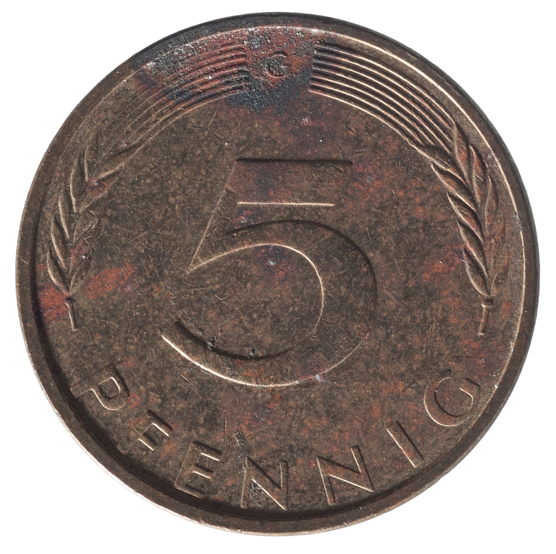 Avers: U sredini mladica hrasta s pet listova u vodoravnoj liniji. Uz rub ispisan tekst BUNDESREPUBLIK DEUTSCHLAND i godina 1971. Revers: U sredini broj 5. Na vrhu slovo G (oznaka kovnice), a uz donji rub riječ PFENNIG.