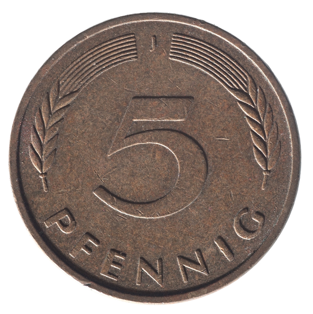 Avers: U sredini mladica hrasta s pet listova u vodoravnoj liniji. Uz rub ispisan tekst BUNDESREPUBLIK DEUTSCHLAND i godina 1978. Revers: U sredini broj 5. Na vrhu slovo J (oznaka kovnice), a uz donji rub riječ PFENNIG.