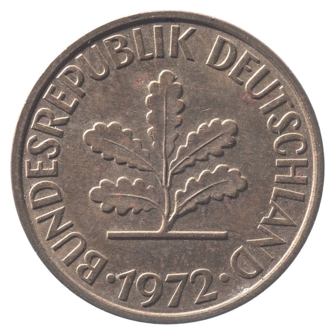 U sredini mladica hrasta s pet listova u vodoravnoj liniji. Uz rub ispisan tekst BUNDESREPUBLIK DEUTSCHLAND i godina 1972.