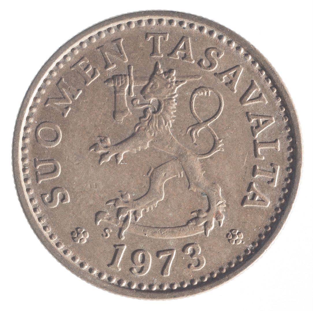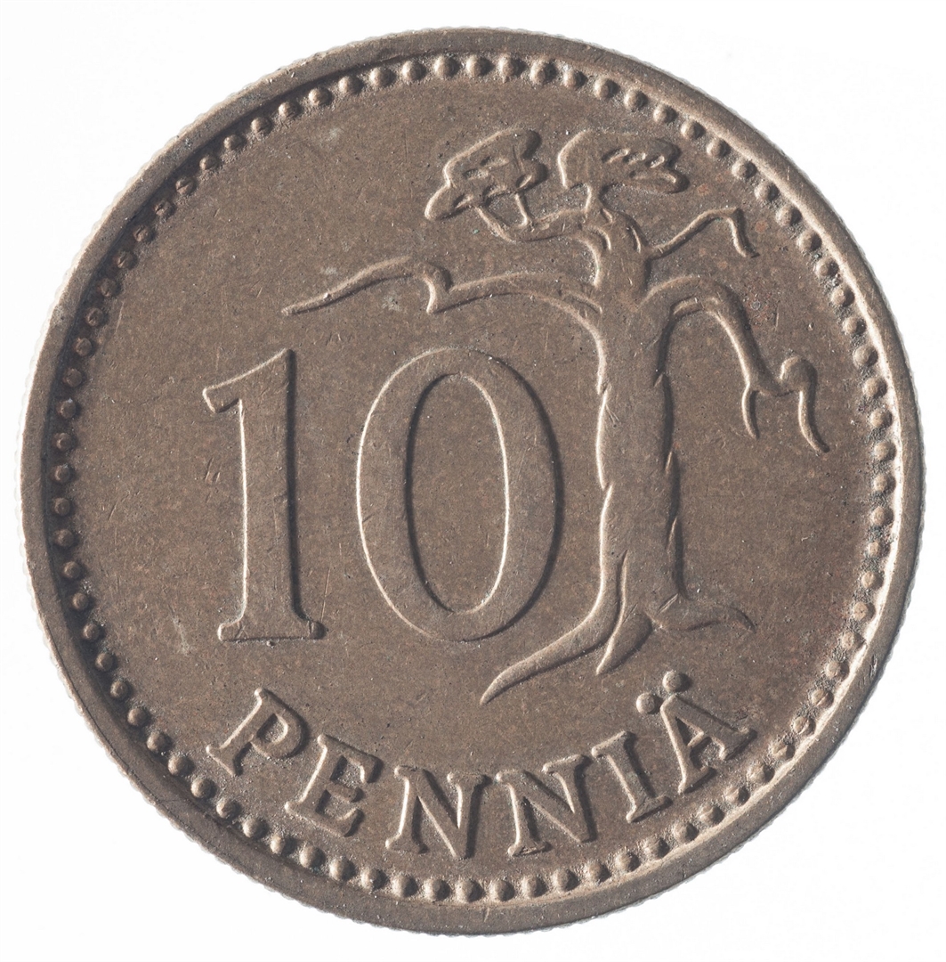 Avers: U sredini Finski grb ispod kojeg se nalazi godina 1973. Uz gornji rub kovanice natpis SOUMEN TASAVALTA. Revers: U sredini broj 10 i stablo. Uz donji rub kovanice natpis PENNIA.
