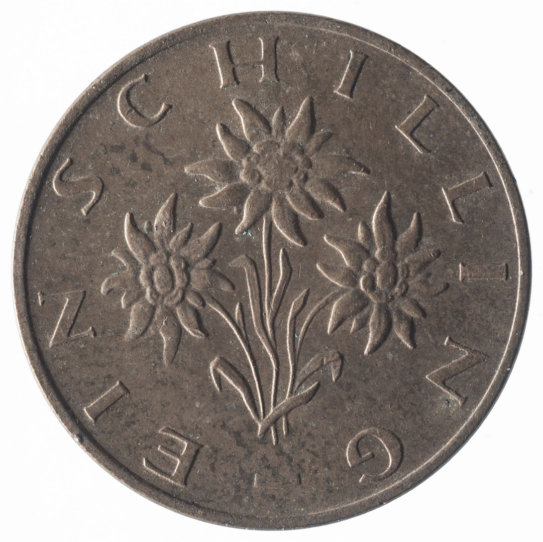 U sredini veliki broj 1, a ispod njega tekst SCHILLING i godina kovanja.
