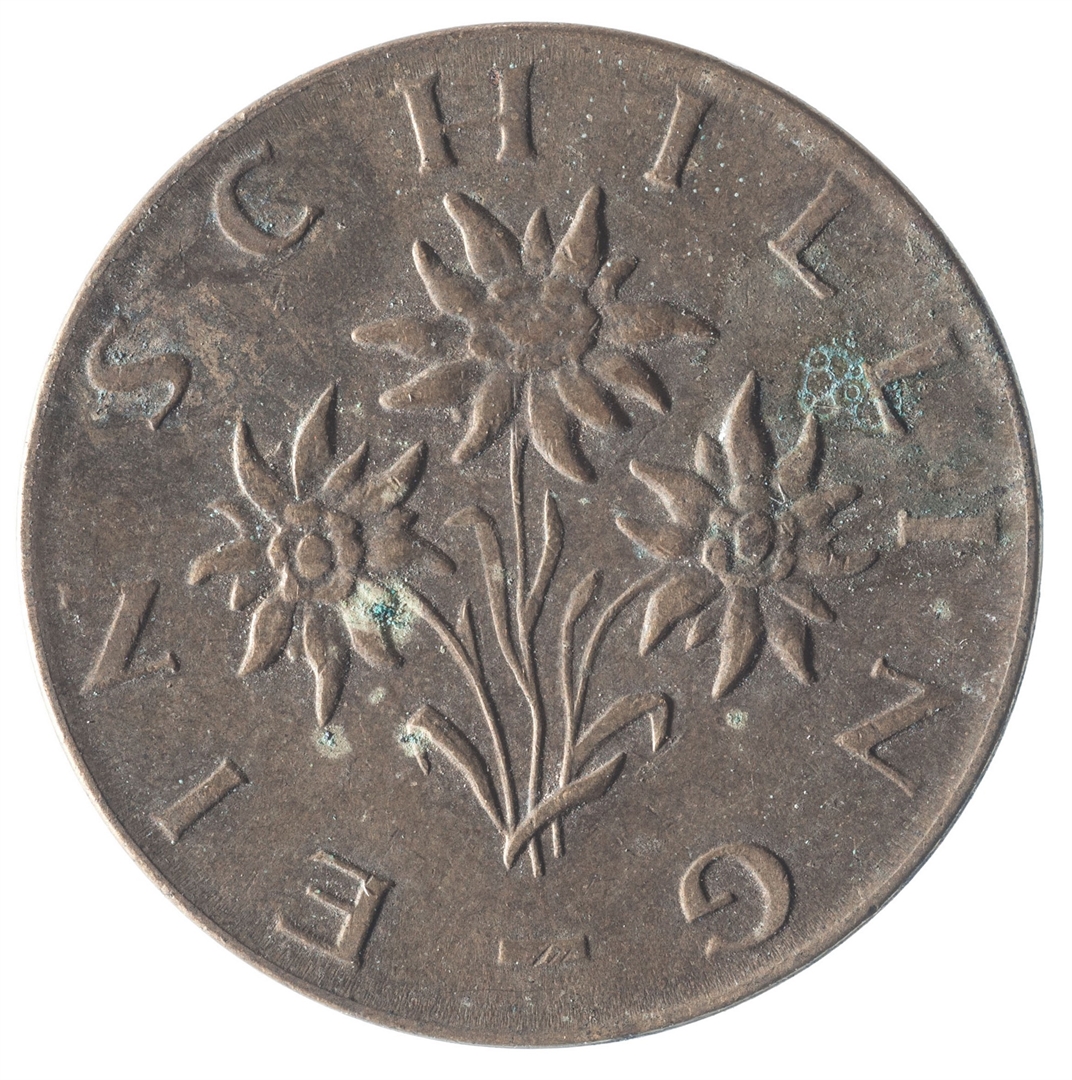 U sredini veliki broj 1, a ispod njega tekst SCHILLING i godina kovanja.