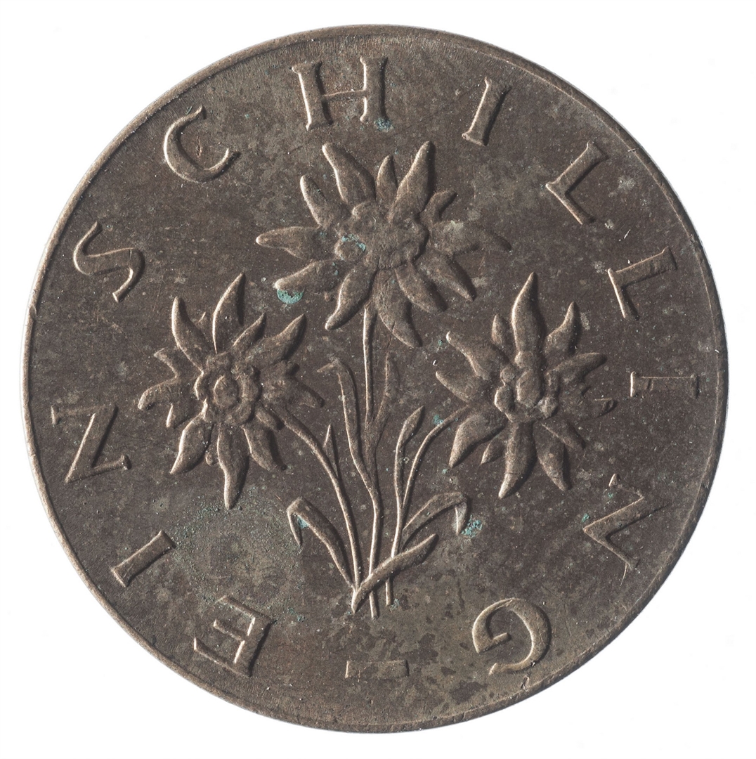 U sredini veliki broj 1, a ispod njega tekst SCHILLING i godina kovanja.