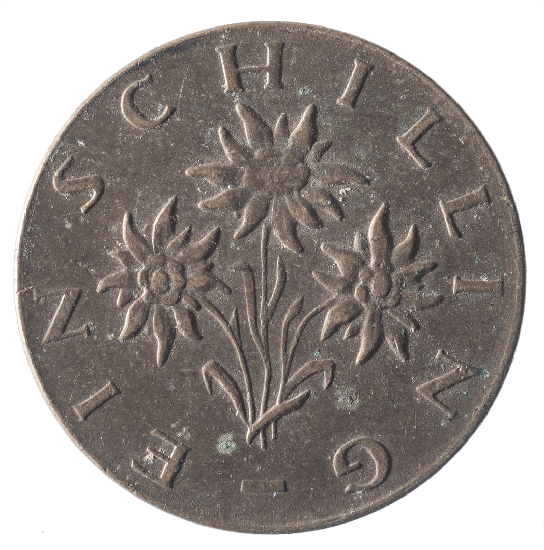 U sredini veliki broj 1, a ispod njega tekst SCHILLING i godina kovanja.