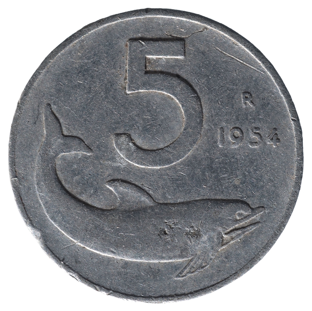U gornjem djelu veliki broj 5 ispod kojeg se nalazi prikaz delfina. Na desnoj strani slovo P ispod kojeg se nalazi godina kovanja.