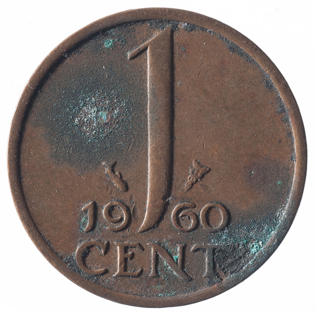 Avers: U sredini profil kraljice okrenut udesno. Kružno uz rub natpis JULIANA KONINGIN DER NEDERLENDEN. Revers: U sredini broj 1, a sa lijeve i desne strane u dva djela godina kovanja 1960. Na dnu natpis CENT.