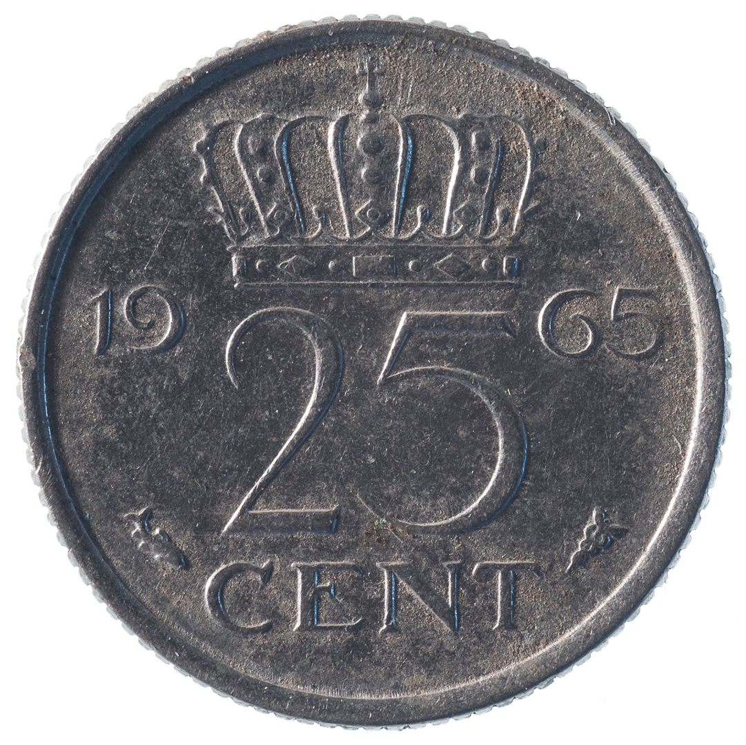 U sredini broj 25, a sa lijeve i desne strane u dva djela godina kovanja 19 65. iznad kruna a na dnu natpis CENT.