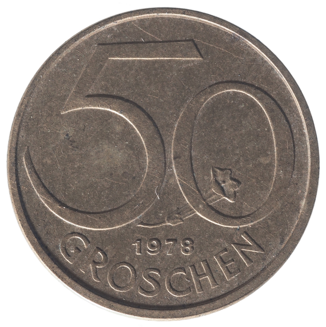 Avers: U sredini državni grb. Kružno uz rub tekst REPUBLIK ''O''STERREICH. Revers: Veliki broj 50 u čijem se dnu nalazi cvijet. Ispod godina kovanja (1978) i tekst GROSCHEN.