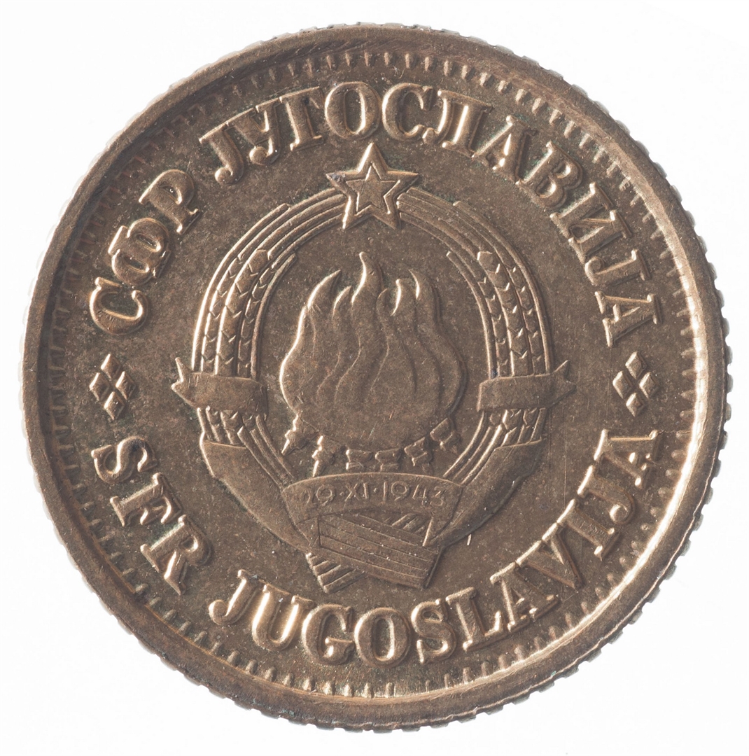 U sredini državni grb. U gornjem djelu uz rub polukružno napisan tekst SFR JUGOSLAVIJA na latinici i ćirilici.