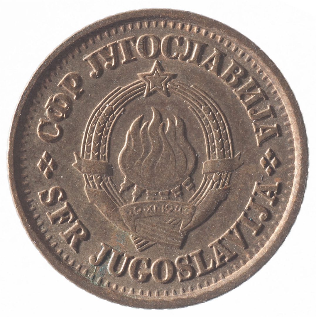 U sredini državni grb. U gornjem djelu uz rub polukružno napisan tekst SFR JUGOSLAVIJA na latinici i ćirilici.