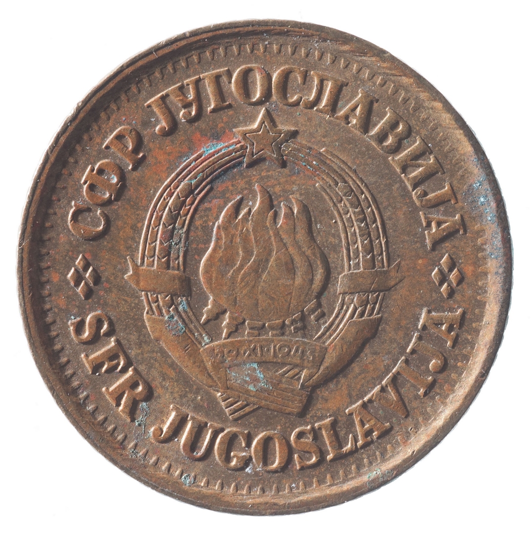 U sredini državni grb. U gornjem djelu uz rub polukružno napisan tekst SFR JUGOSLAVIJA na latinici i ćirilici.