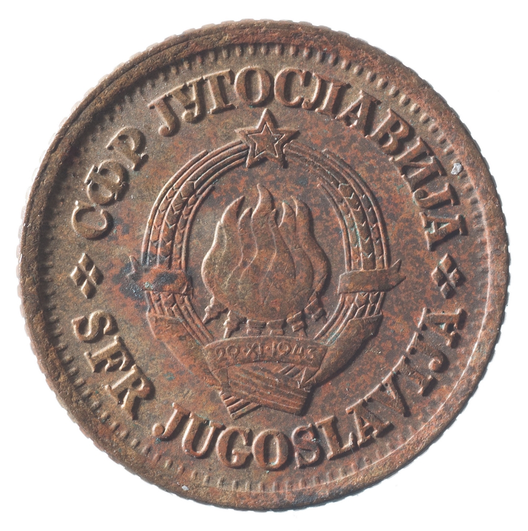 U sredini državni grb. U gornjem djelu uz rub polukružno napisan tekst SFR JUGOSLAVIJA na latinici i ćirilici.