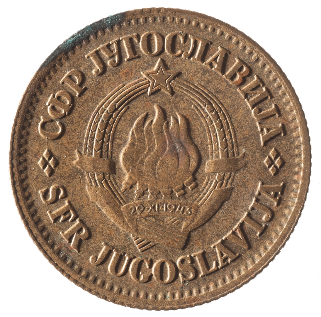U sredini državni grb. U gornjem djelu uz rub polukružno napisan tekst SFR JUGOSLAVIJA na latinici i ćirilici.