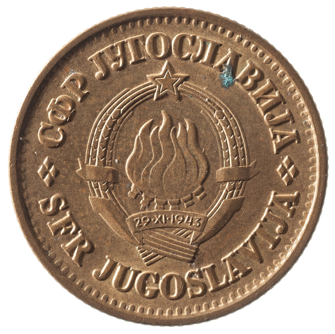 U sredini državni grb. U gornjem djelu uz rub polukružno napisan tekst SFR JUGOSLAVIJA na latinici i ćirilici.