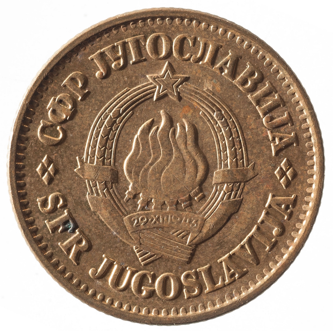 U sredini državni grb. U gornjem djelu uz rub polukružno napisan tekst SFR JUGOSLAVIJA na latinici i ćirilici.