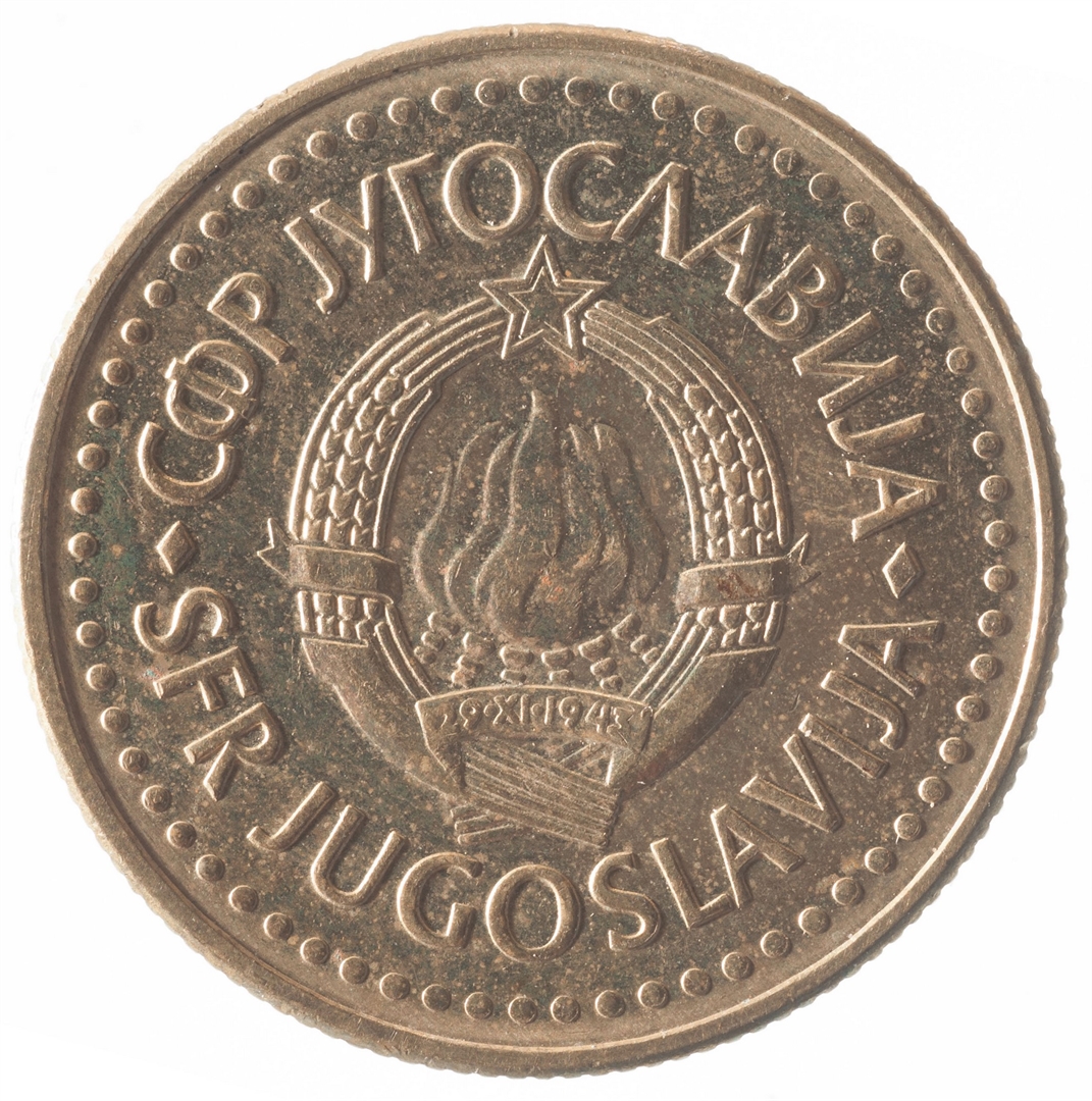 U sredini državni grb. Oko njega uz rub polukružno napisan tekst SFR JUGOSLAVIJA na latinici i ćirilici.