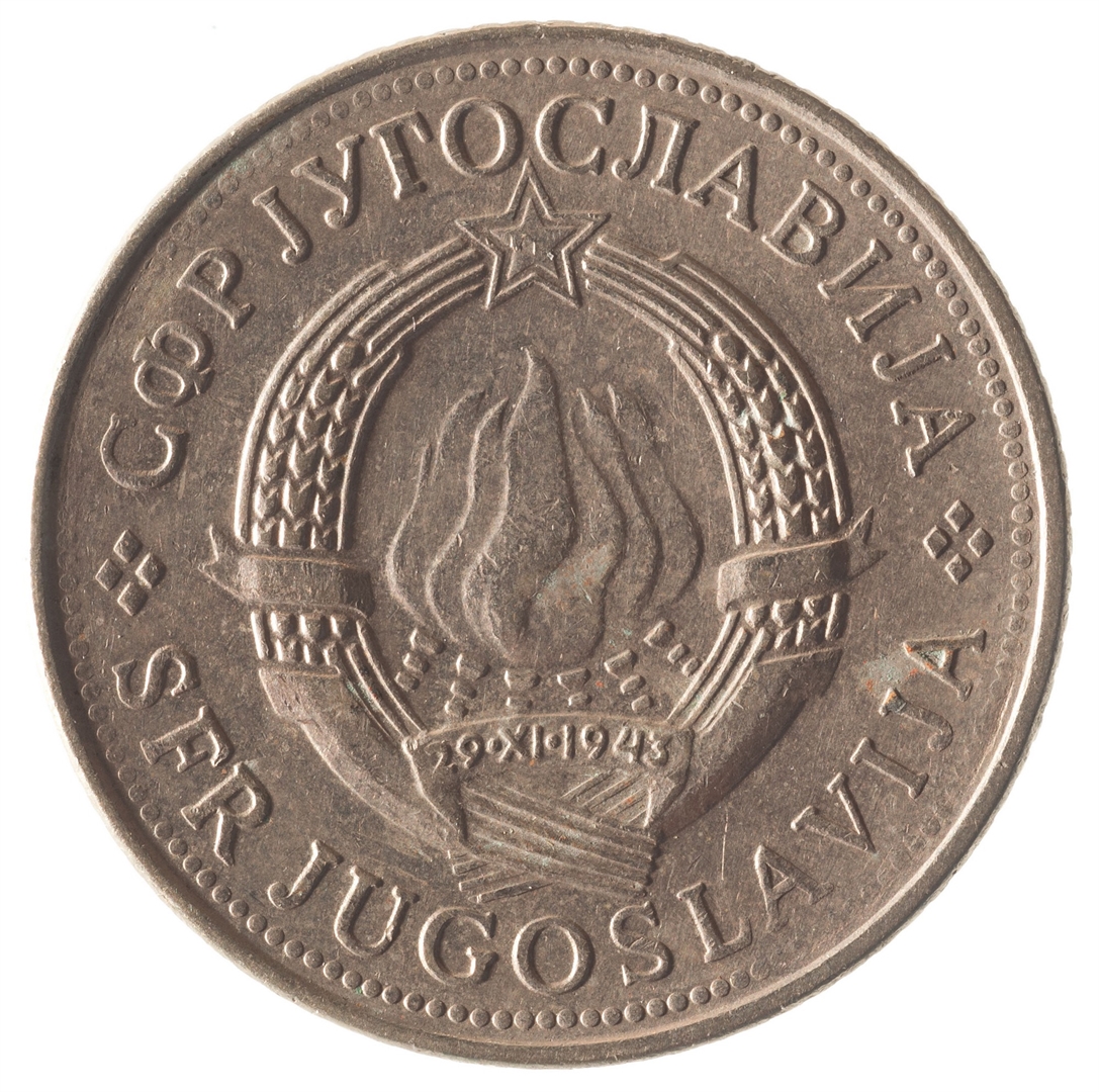Avers: U sredini državni grb. U oko njega uz rub polukružno napisan tekst SFR JUGOSLAVIJA na latinici i ćirilici. Revers: U sredini broj 5 (nominala), oko njega tekst DINAR na četiri jezika, a ispod toga godina 1981. Duž gornjeg ruba polukružno poredano 6 petokrakih zvjezdi.