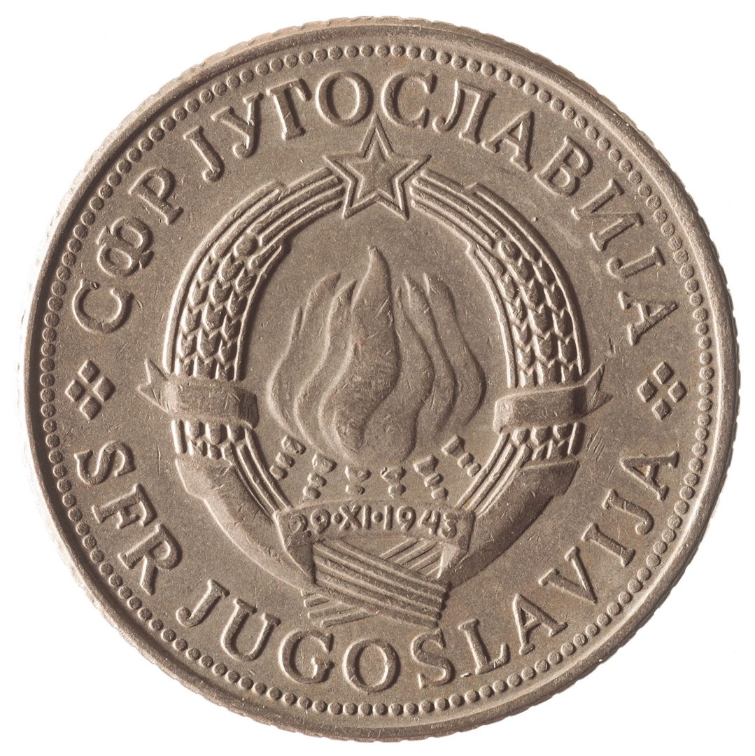 Avers: U sredini državni grb. U oko njega uz rub polukružno napisan tekst SFR JUGOSLAVIJA na latinici i ćirilici. Revers: U sredini broj 5 (nominala), oko njega tekst DINAR na četiri jezika, a ispod toga godina 1974. Duž gornjeg ruba polukružno poredano 6 petokrakih zvjezdi.