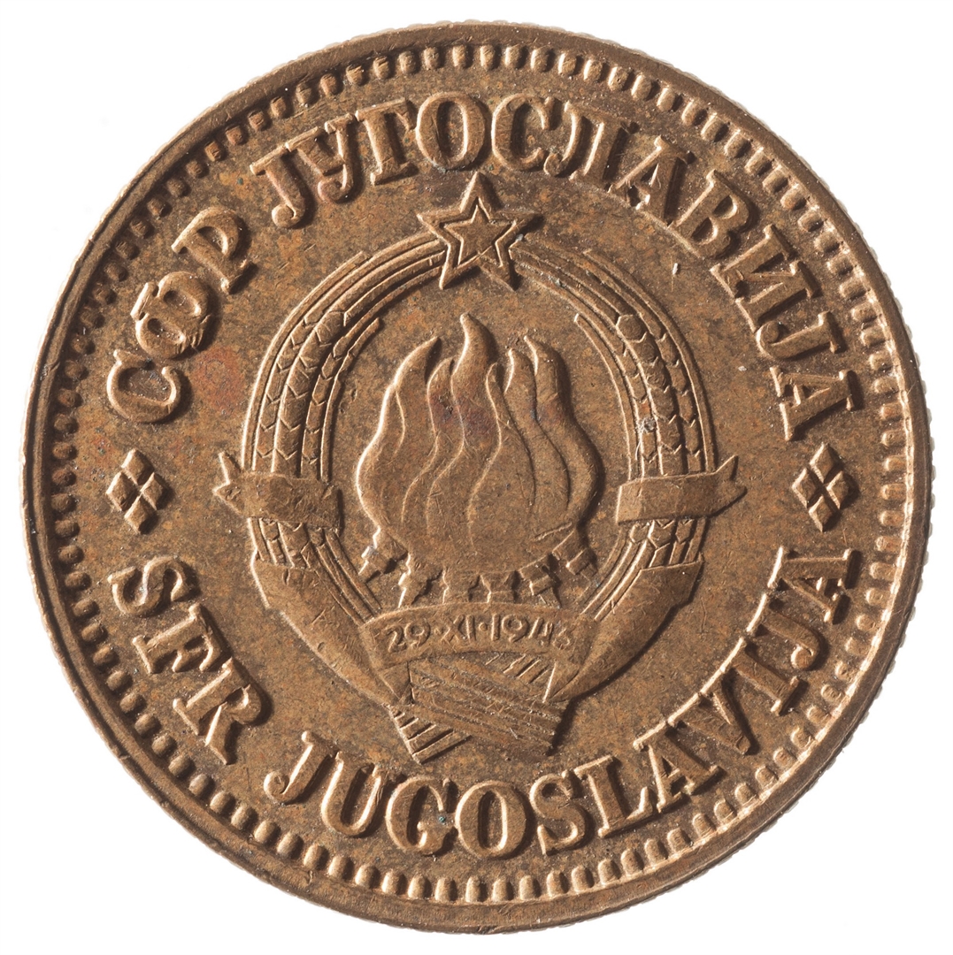 U sredini državni grb. U gornjem djelu uz rub polukružno napisan tekst SFR JUGOSLAVIJA na latinici i ćirilici.