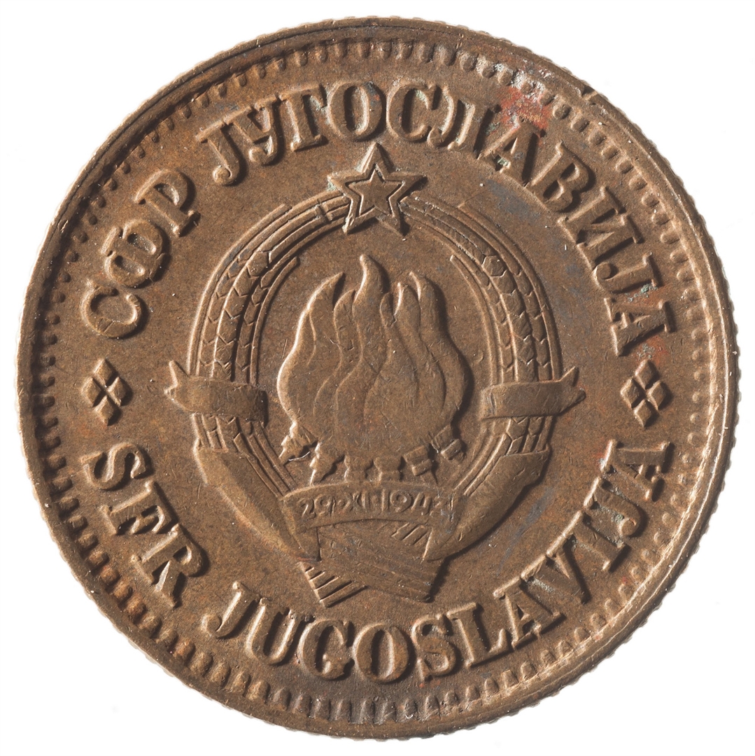 U sredini državni grb. U gornjem djelu uz rub polukružno napisan tekst SFR JUGOSLAVIJA na latinici i ćirilici.
