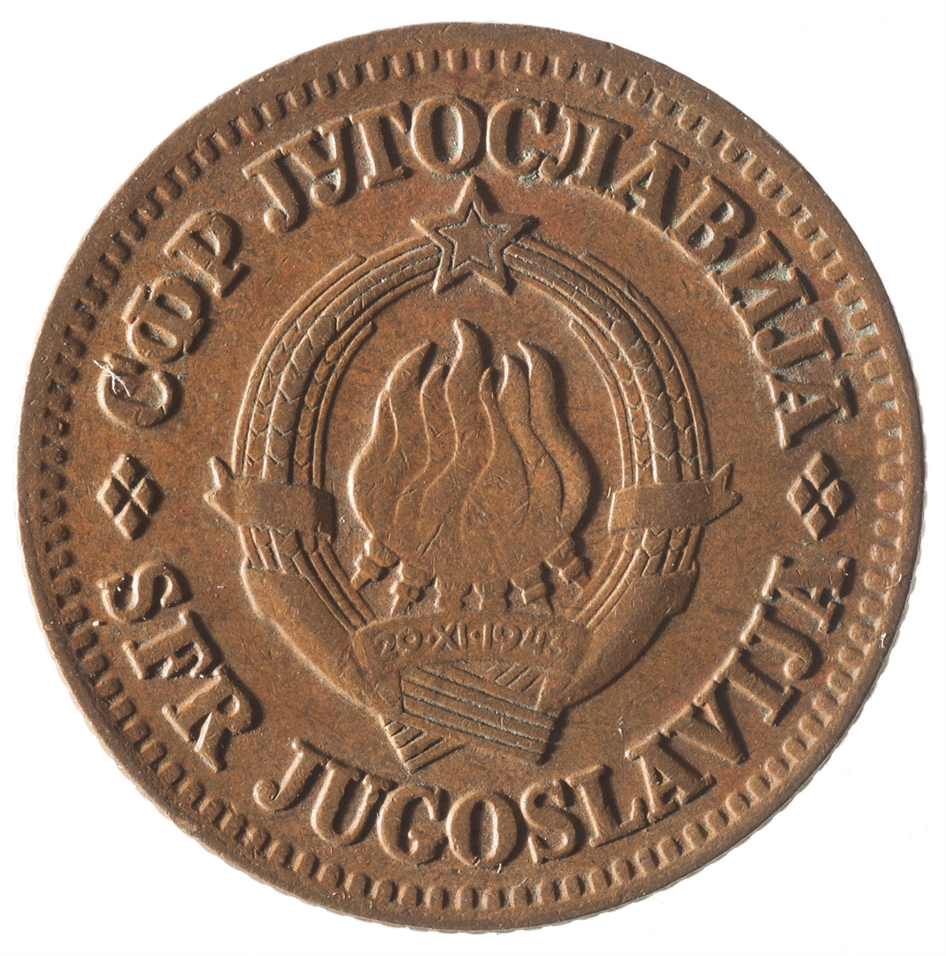 U sredini državni grb. U gornjem djelu uz rub polukružno napisan tekst SFR JUGOSLAVIJA na latinici i ćirilici.