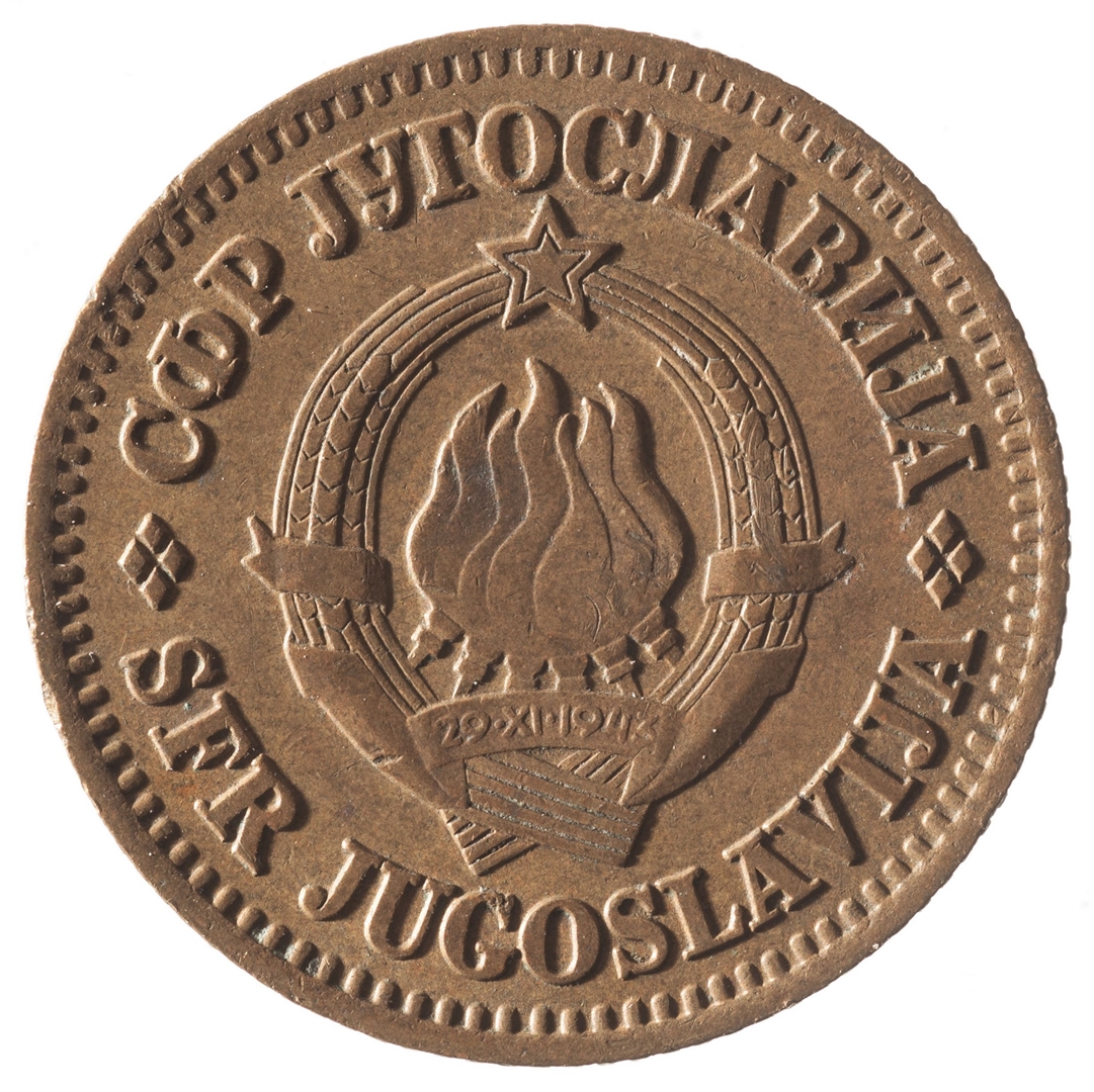 U sredini državni grb. U gornjem djelu uz rub polukružno napisan tekst SFR JUGOSLAVIJA na latinici i ćirilici.