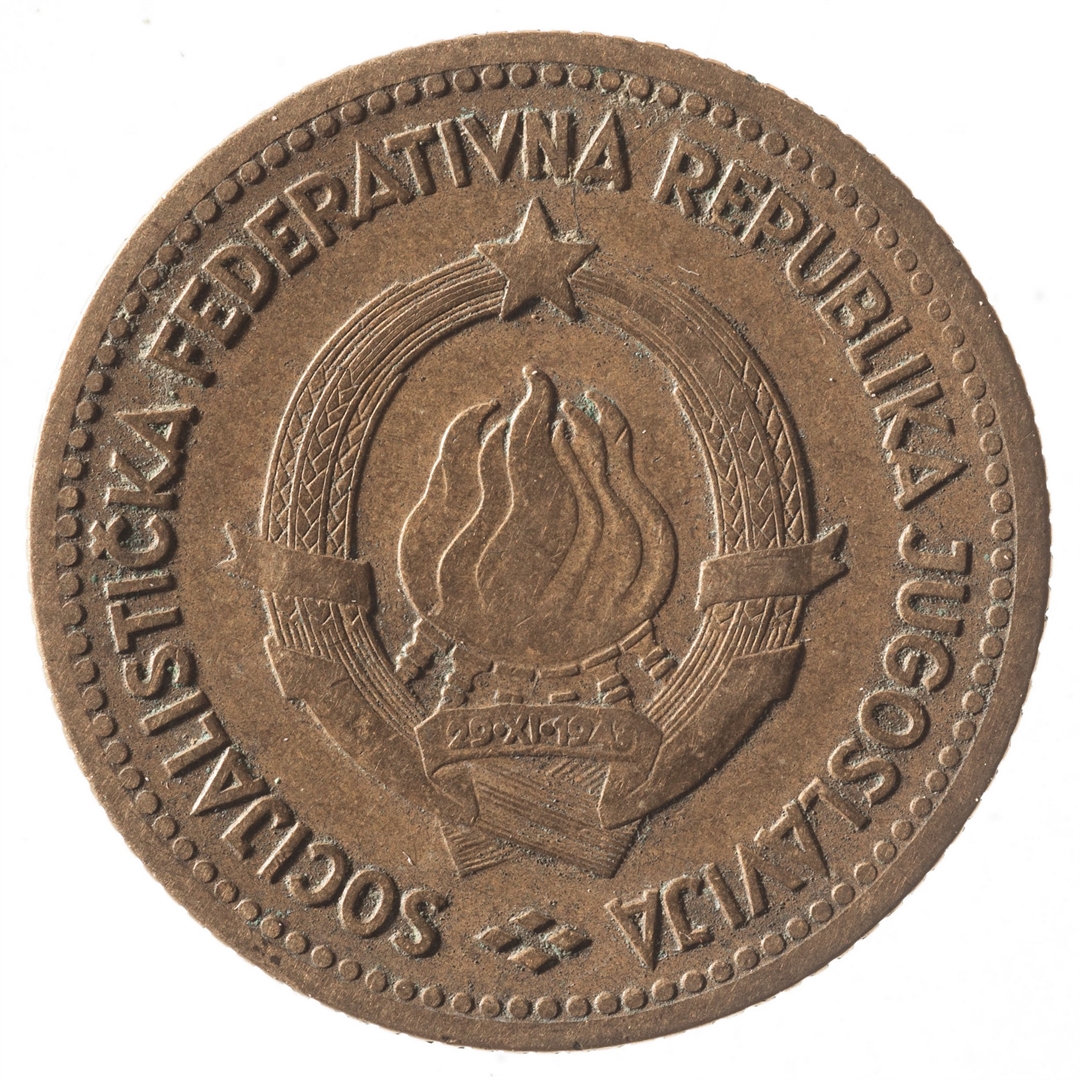 U sredini državni grb. U gornjem djelu uz rub polukružno napisan tekst SOCIJALISTIČKA FEDERATIVNA REPUBLIKA JUGOSLAVIJA.