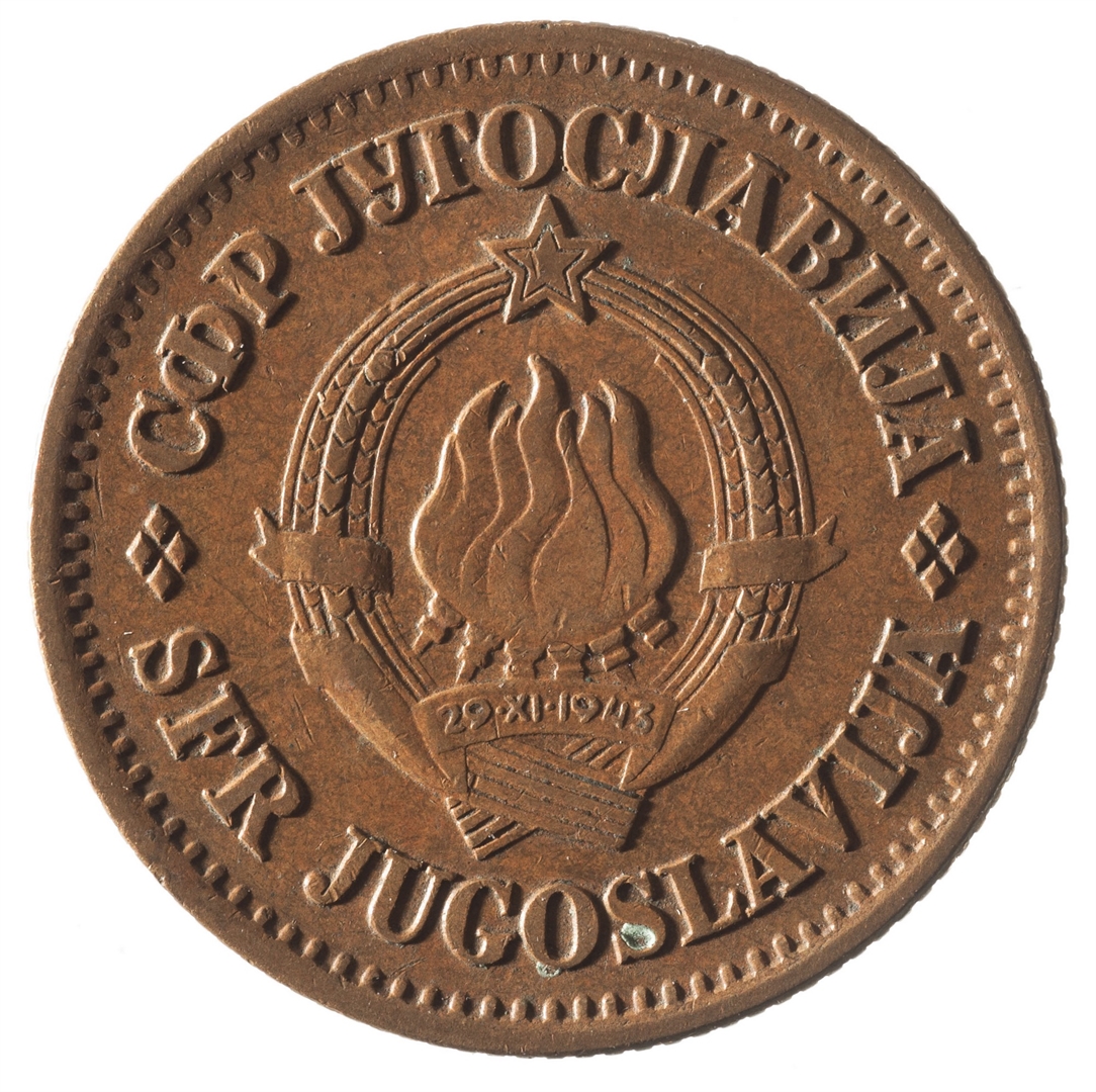 U sredini državni grb. U gornjem djelu uz rub polukružno napisan tekst SFR JUGOSLAVIJA na latinici i ćirilici.