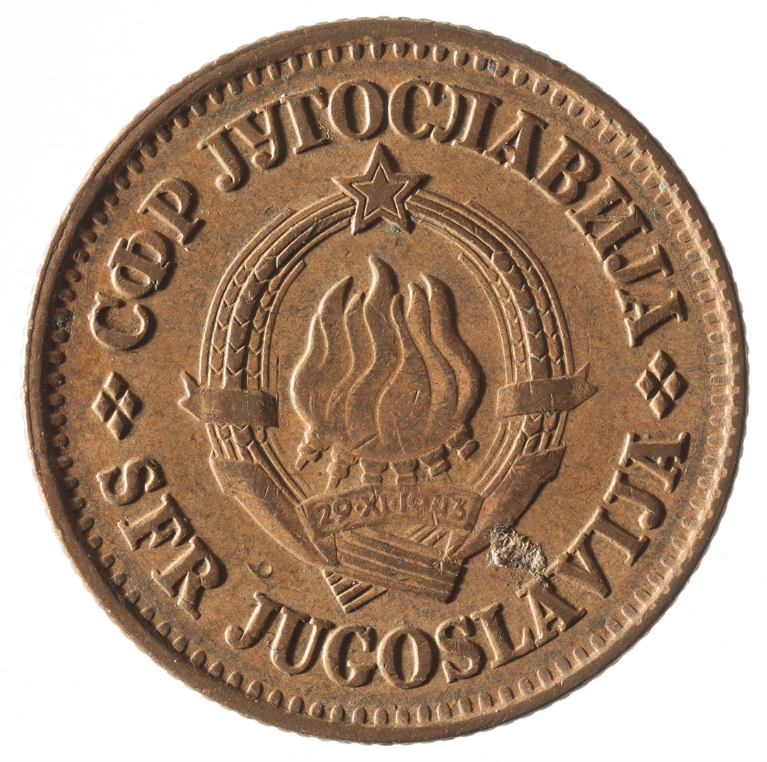 U sredini državni grb. U gornjem djelu uz rub polukružno napisan tekst SFR JUGOSLAVIJA na latinici i ćirilici.