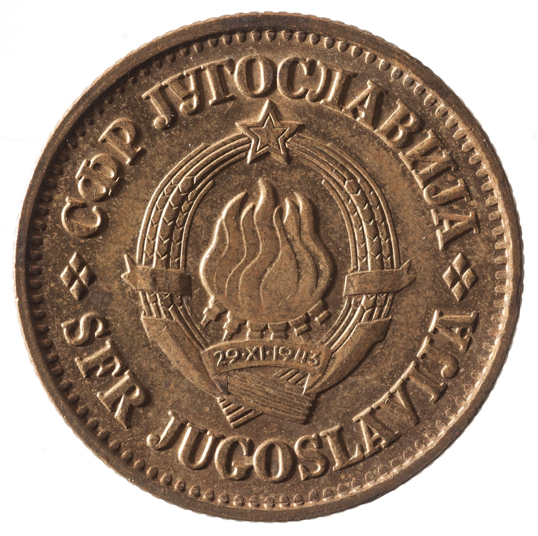 U sredini državni grb. U gornjem djelu uz rub polukružno napisan tekst SFR JUGOSLAVIJA na latinici i ćirilici.
