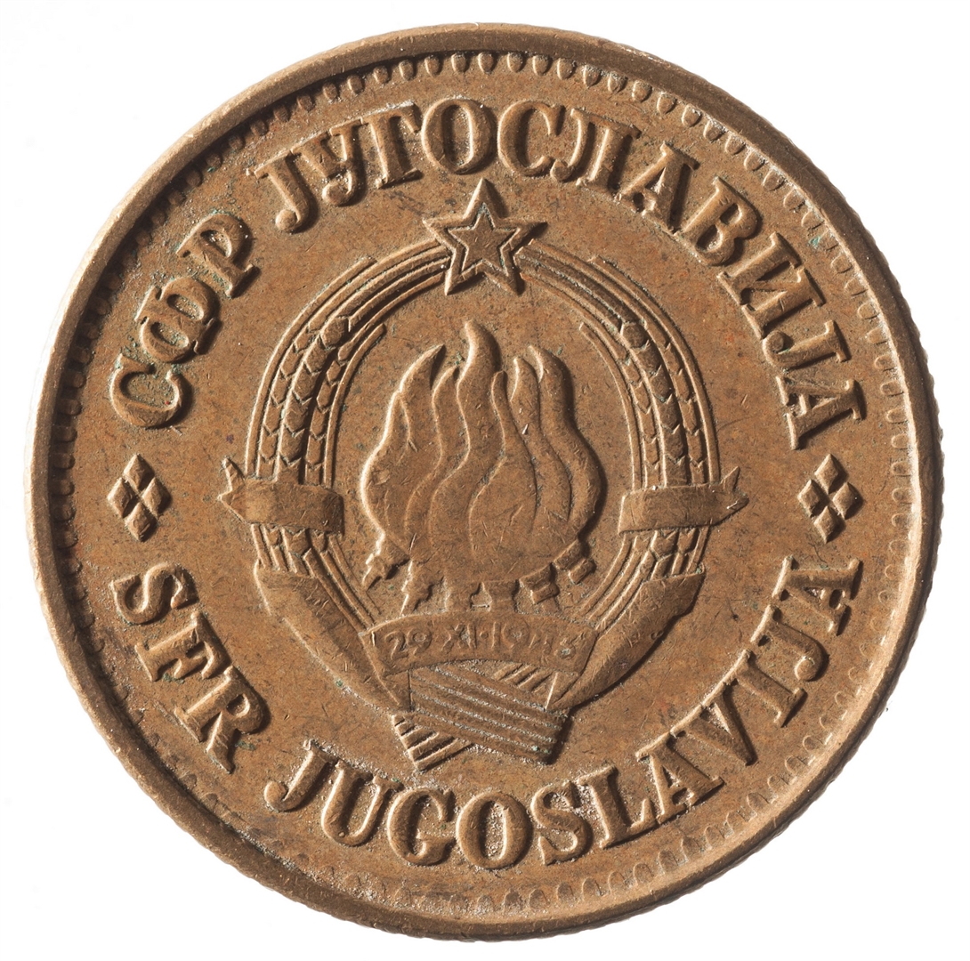 U sredini državni grb. U gornjem djelu uz rub polukružno napisan tekst SFR JUGOSLAVIJA na latinici i ćirilici.