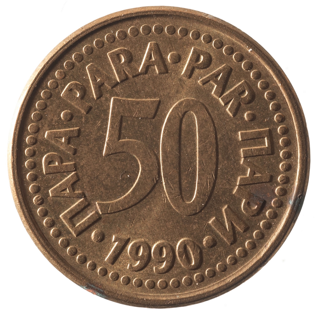 Avers: U sredini državni grb. U oko njega uz rub polukružno napisan tekst SFR JUGOSLAVIJA na latinici i ćirilici. Revers: U sredini broj 50 (nominala), oko njega tekst PARA na četiri jezika, a ispod toga godina 1990.