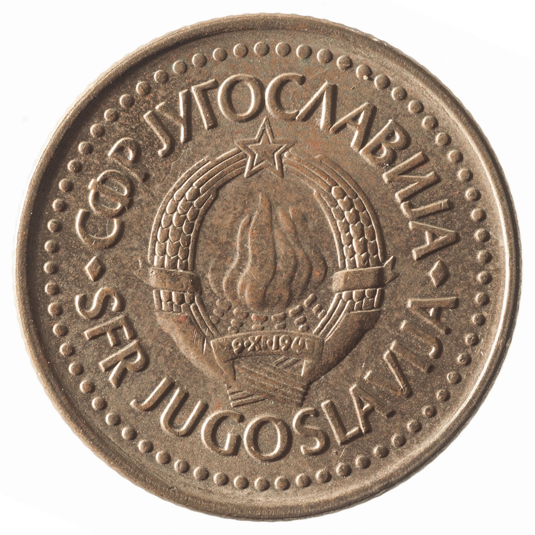 U sredini državni grb. U gornjem djelu uz rub polukružno napisan tekst SFR JUGOSLAVIJA na latinici i ćirilici.