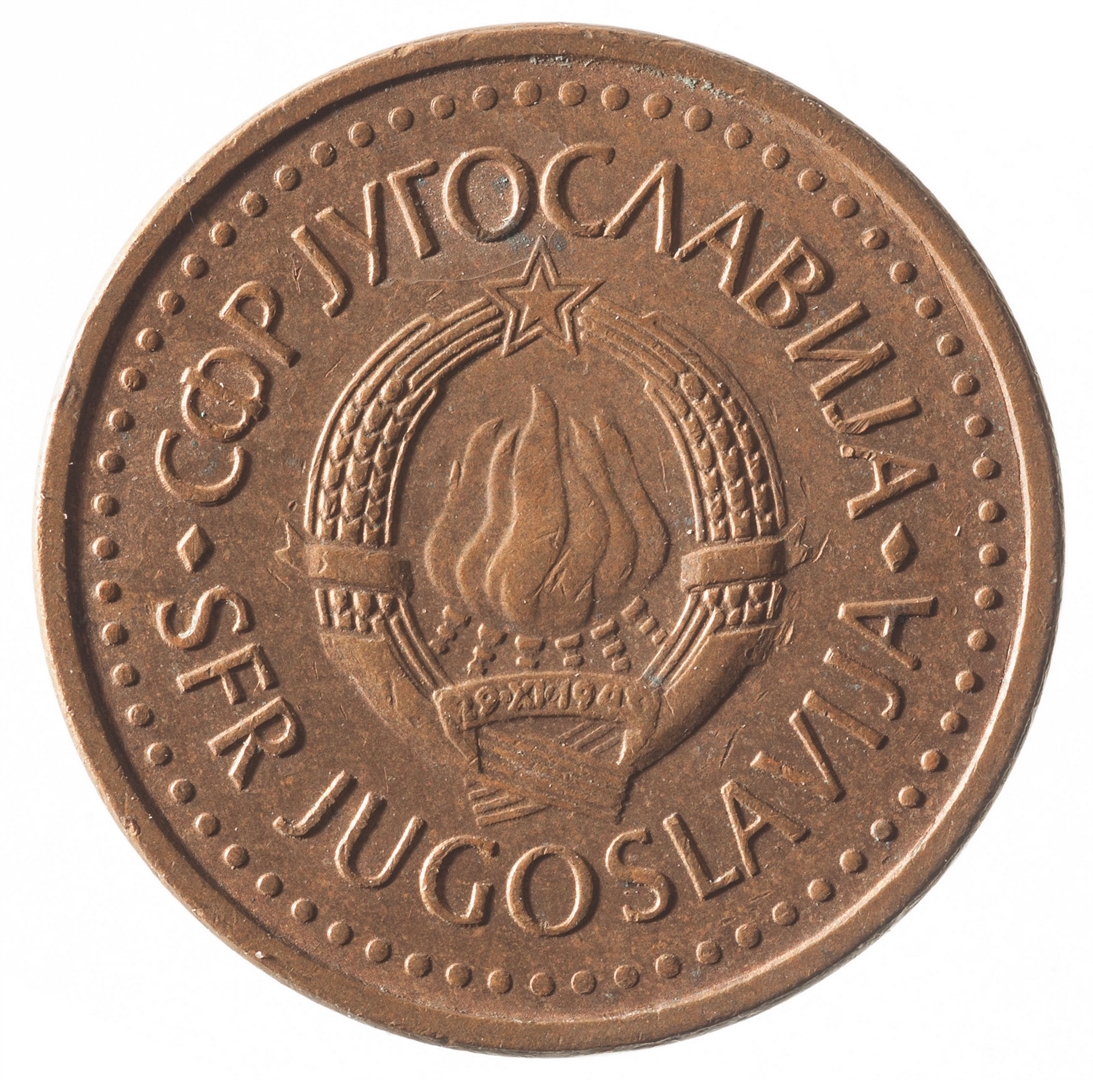 U sredini državni grb. U oko njega uz rub polukružno napisan tekst SFR JUGOSLAVIJA na latinici i ćirilici.